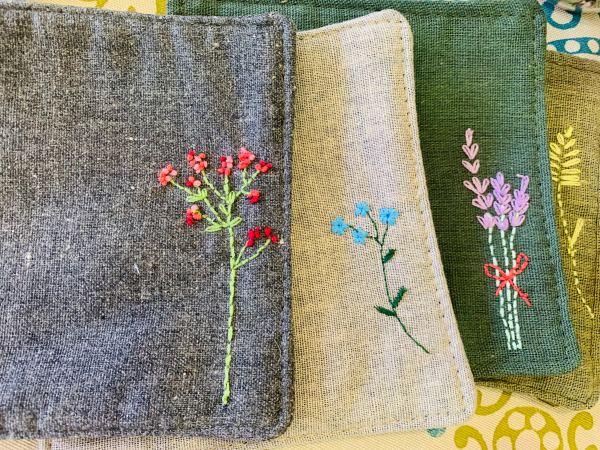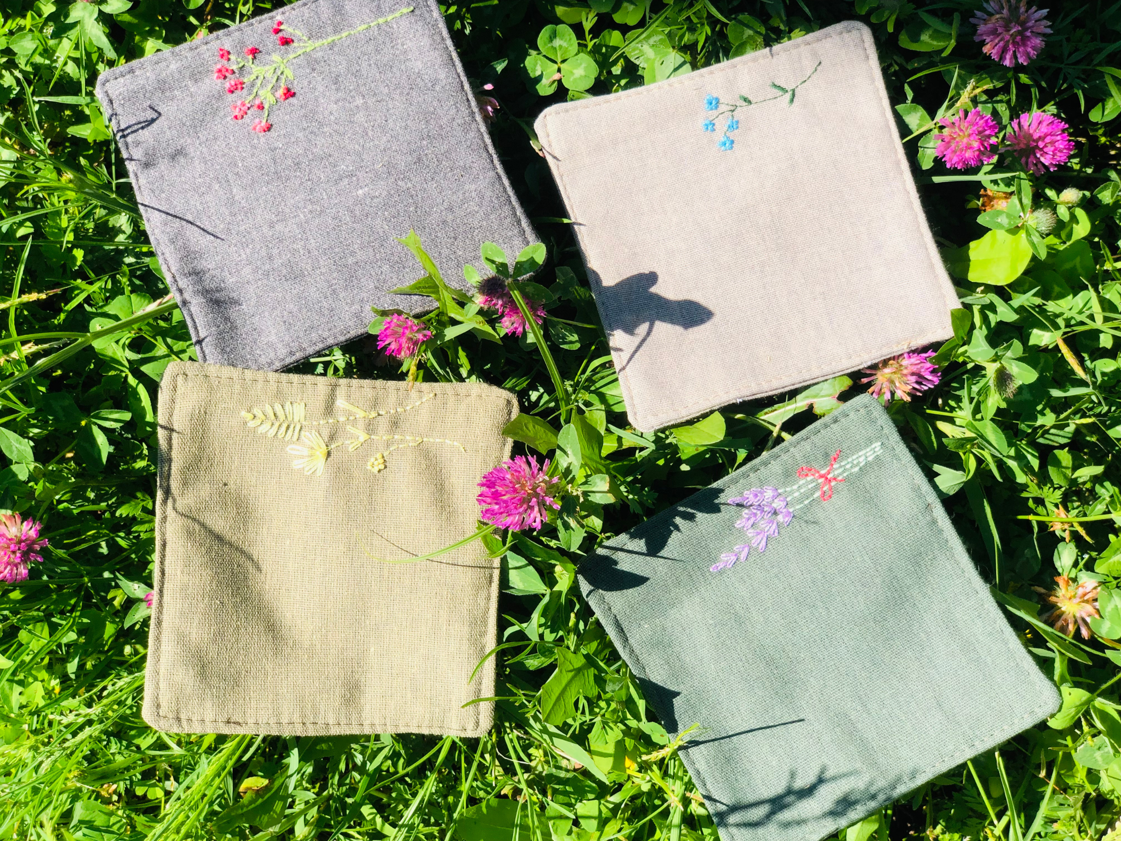 Each of these coasters is lovingly handmade and features a small, unique embroidery inspired by nature ✿ from tiny flowers to delicate leaves.